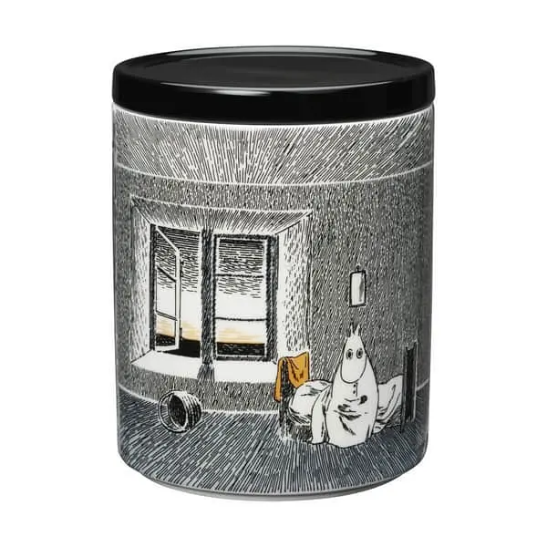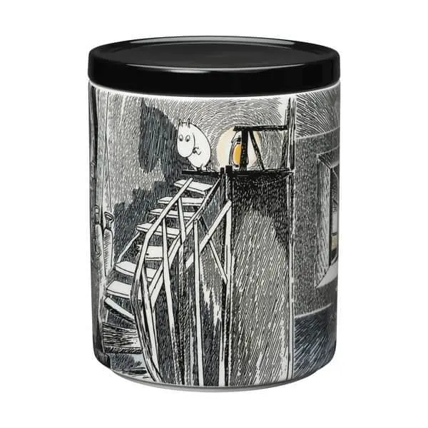 - Med sit tætsluttende låg bevarer Arabia Mumi Krukke maddens friskhed og aroma. Den er ideel til opbevaring af tørvarer, krydderier, kaffe, te og meget mere.