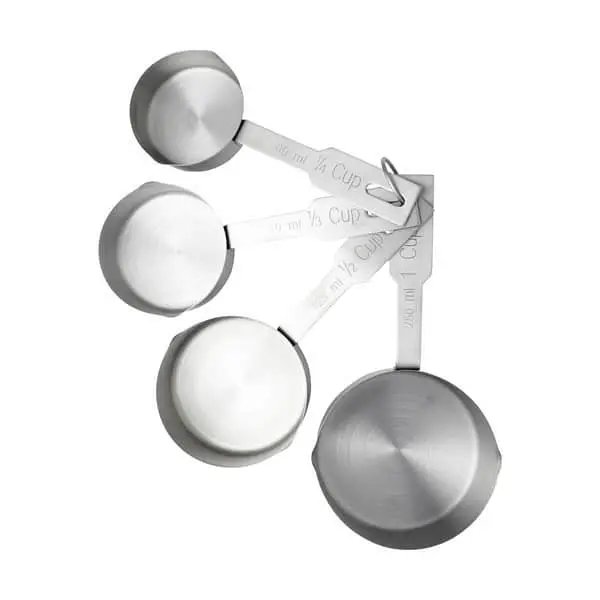 Målebægersættet er praktisk samlet med en metalring, så du altid har styr på dine måleredskaber i køkkenskuffen.
