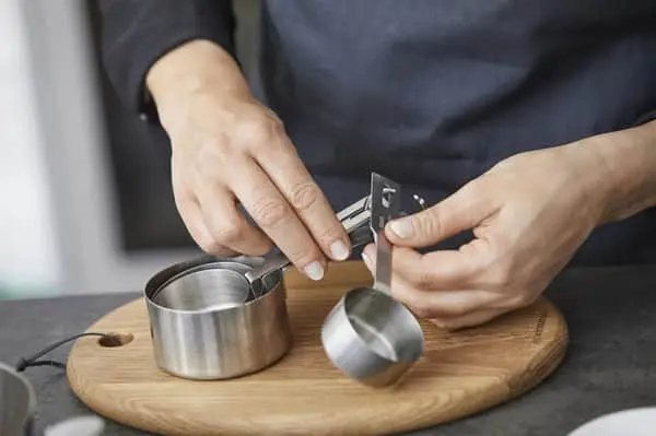 Blomsterbergs målesæt gør dig nemt og hurtigt i stand til at måle sukker, mel, kerner, mælk og vand, når du bager eller kokkerer i køkkenet.