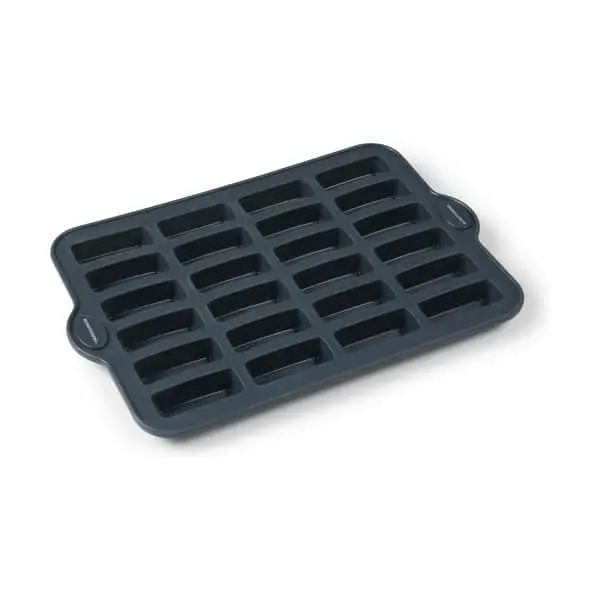 Lav nemt hjemmelavede petit fours med denne smarte Petit four form i grå silikone fra Blomsterbergs. Formen har 24 huller og er perfekt til små bageværk.