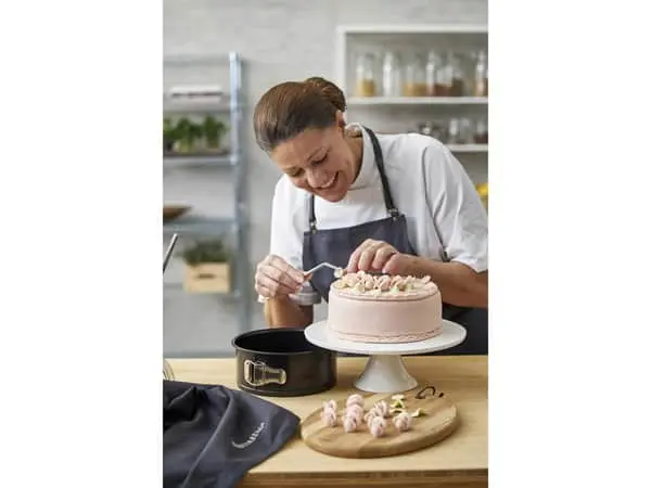 - Blomsterbergs Springform er let at montere og demontere, hvilket gør det nemt at fjerne kagen uden at ødelægge den. Den har en antiklip-belægning, der sikrer, at kagen nemt kan frigøres.
