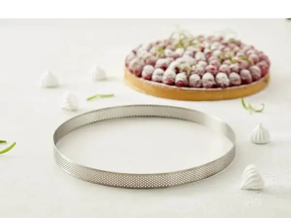 For største glæde af tærteringen, er det nødvendigt at bage tærten på en bageplade beklædt med bagepapir. Formen er i perforeret rustfrit stål, der giver den perfekte sprøde bund og garanterer et skarpt bageresultat.
