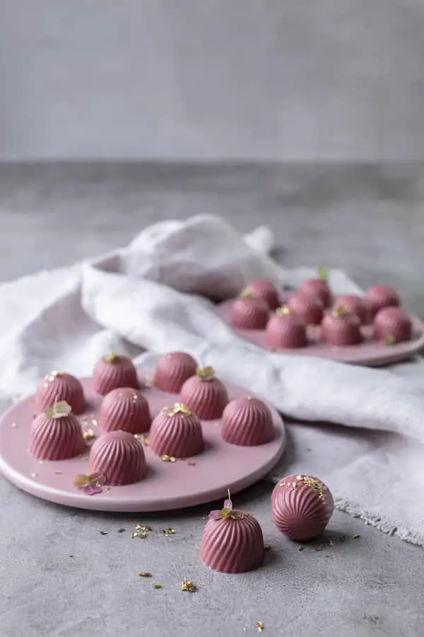 Her er hvad Ditte Julie mener om chokolade: Jeg elsker at lave små fyldte chokolader. Ikke mindst fordi de kan laves i adskillige farver, udtryk og smagsvariationer. Hele året taler til, at der kan laves lækre fyldte chokolader. De er fantastiske på ethvert kagebord og ikke mindst som gave til værten.
