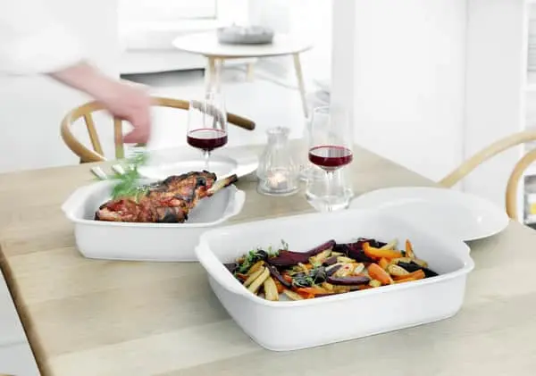 CASA Living fadsæt i hvid porcelæn, består af 2 fade, som er henholdsvis 30,8 x 23,8 cm og 40 x 30 cm. Begge fade kan modstå termisk chok, hvilket betyder, at de dermed kan tages direkte fra fryser til ovn eller grill. Fadsættet tåler fra -30 og op til +250°C samt mikroovn og opvaskemaskine.