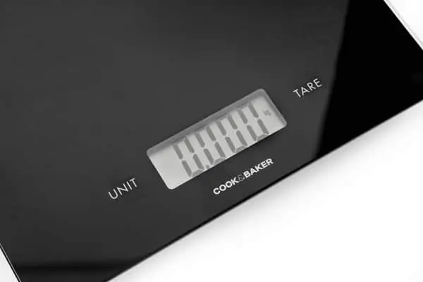 Cook & Baker køkkenvægten kan veje op til 20 kg med 2 grams interval. Den er god til at veje store skåle med tung dej. Køkkenvægten har tare-funktion, som muliggør nulstilling af display under vejning. Vægten slukker automatisk. Den bruger 2 x AAA batterier (medfølger ikke).