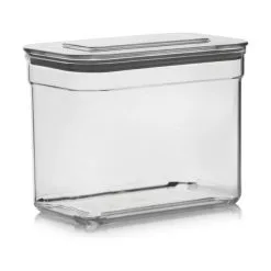 Opbevaringsboksene er fremstillet i klar plast med tætsluttende integreret gummipakning. Det betyder, at du nemt har overblikover dine råvarer i køkkenet og at de tilmed holder sig længe, da låget slutter tæt om boksen. Da de er stabelbare, kan du nemt fine opbevaringsplads i køkkenskabet.