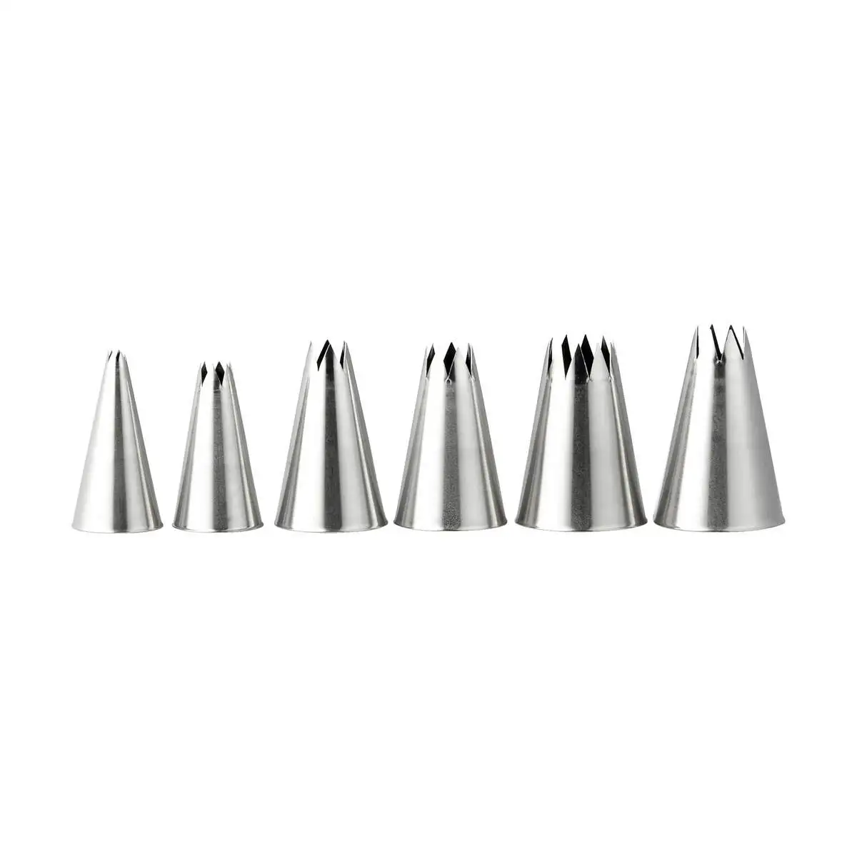 I det pynteglade bagekøkken findes der naturligvis sprøjteposer og tyller en masse til at dekorere cupcakes, flødeskumskager og alt derimellem. Få en flot finish på din dessert med Cook & Bakers stjerneformede tyller i 6 forskellige størrelser.De 6 tyller måler 4, 8,10, 12, 14 og 18 mm i diameter