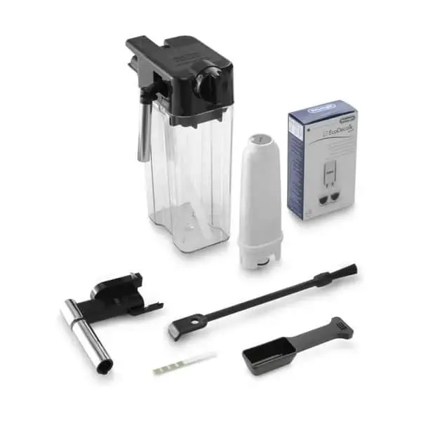 Der medfølger en mælkekande, doseringsske og et vandfilter.