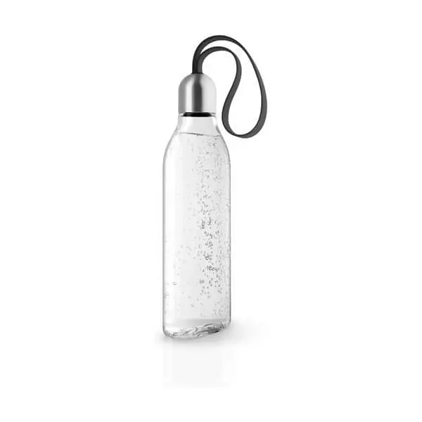 Som et alternativ til engangsflaskerne, har Eva Solo designet en backpack drikkeflaske i et smalt design, der passer lige i tasken. Flasken er fremstillet i BPA-frit kunststof, hvilket betyder, at den er fri for bisphenol, phtalater og tungmetaller.Backpack drikkeflasken holder 100% tæt, og forsynet med en strop, så den er nem og velegnet til at have med på farten. Drikkeflasken kan fyldes igen og igen og belaster derfor miljøet mindst muligt. Selve plastflasken tåler maskinopvask og skruelåget skal vaskes i hånden.
