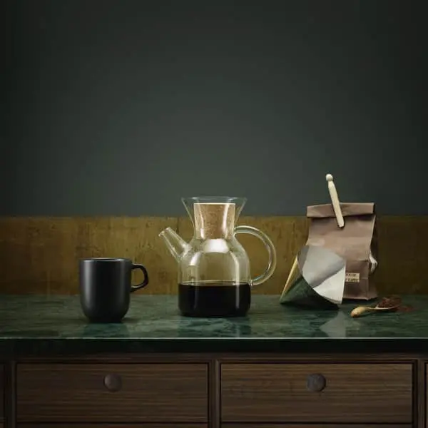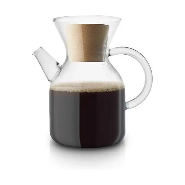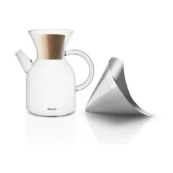 Bryg den perfekte kop kaffe med Eva Solo pour-over kaffebrygger. Kaffebryggeren fornyer den klassiske bryggemetode, hvor vand og bønner langsomt filtreres, og giver dig den bedste smag af kaffen og en fornem servering. Kaffebryggeren bruger et rustfrit stålfilter, så du kan nyde godt af alle kaffens æteriske olier, som ellers fanges i papirfilteret. Efter brygning kan du erstatte filteret med den praktiske korkprop, så kaffen forbliver varm og holder på den dejlige aroma. Kanden er designet i varmebestandigt glas og både filter og håndtag forbliver koldt under brug. Eva solo kaffebrygger kan indeholde 1 liter og tåler opvaskemaskine. Materiale: rustfrit stål, borosilikatglas, kork. Design: Claus Jensen og Henrik Holbæk, Tools.