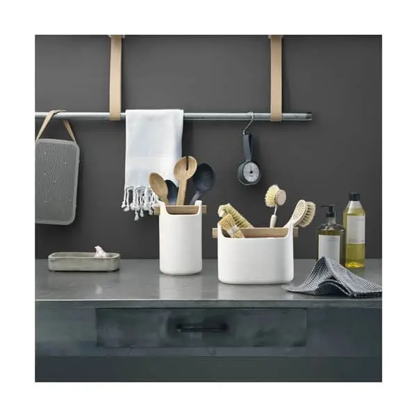 - Eva Solo er kendt for sine innovative og stilrene designs, der kombinerer funktionalitet med æstetik. Redskabskrukken er et must-have for enhver, der ønsker et organiseret køkken.