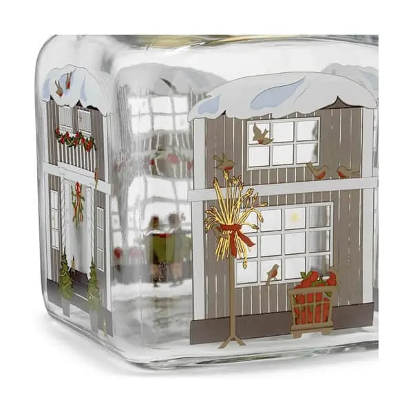 Årets julekageglas er prydet med julens smukke farver, der er med til at skabe den helt rette julestemning. Julekageglasset fortæller en fortryllende historie, og kan bruges til julens søde småkager.