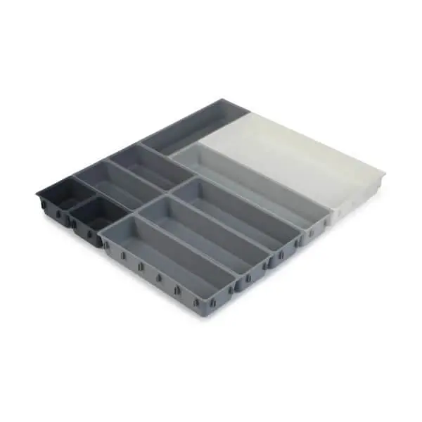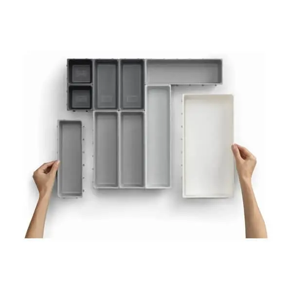 Åhh, hvor er den hvidløgspresser nu… Vi kender alle rodeskufferne i køkkenet, som roder sig selv til natten over. Lad dette være slut med denne smarte bestikskuffe, der kan sættes sammen, så det netop passer til dine skuffer og behov.