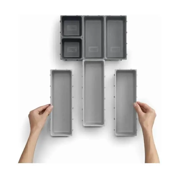 Åhh, hvor er den hvidløgspresser nu… Vi kender alle rodeskufferne i køkkenet, som roder sig selv til natten over. Lad dette være slut med denne smarte bestikskuffe, der kan sættes sammen, så det netop passer til dine skuffer og behov.