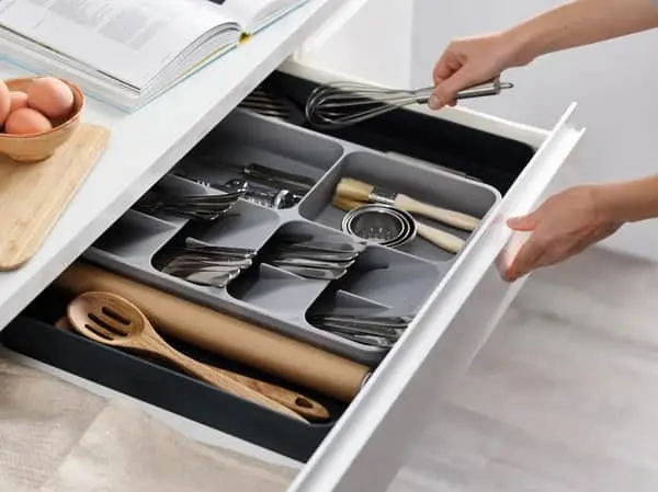 - Organiser dit bestik effektivt med Joseph Joseph DrawerStore Bestikindsatsen. Designet til at maksimere pladsen i dine køkkenskuffer.