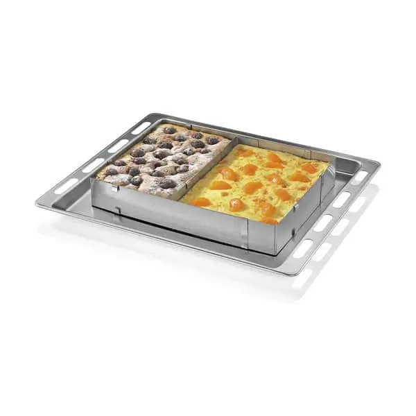 Hvad stiller man op, når ungerne vil have drømmekage, og resten af familien er mere til chokoladebrownie? Med den rektangulære kageform fra Küchenprofi kan du nemt bage to forskellige slags kager på én gang. Eller du kan bruge formen til at bage kage i lige netop den størrelse, du ønsker.