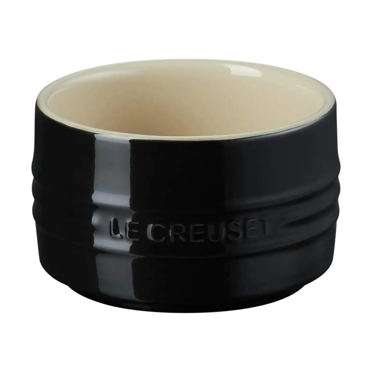 Le Creusets ramekiner tåler både ovn, mikroovn og fryser og kan derfor bruges til mange formål i køkkenet. Den indvendige sandfarvede glasur er særlig rengøringsvenlig og gør ramekinen uigennemtrængelige for smag, fugt og farve fra madvarer.