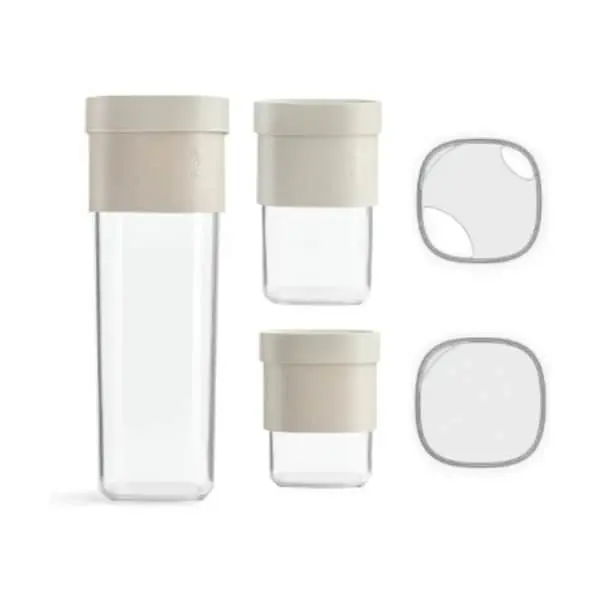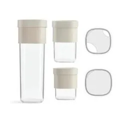 Beholderne er velegnede til opbevaring af tørfoder, salt, sukker, mel, nødder, frø og meget mere. Silikonelågde holder sig friske længere og forhindrer fugt i at komme ind i beholderen. Takket være de gennemsigtige sider og låg kan vi se, hvad der er indeni uden at åbne beholderen. Det medfølgende tilbehør, såsom en støvsi og et låg med hældeåbninger, er med til at tømme beholderne lettere