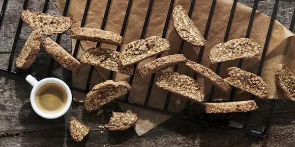 Cantuccini har her fået et twist med kokosblomstsukker og tørret citronskal, som gør den endnu mere smagsrig.
