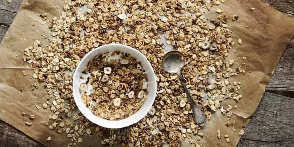 Ingredienser: Havregryn grove*, rørsukker, sesamfrø*, hasselnødder*, knækket boghvede, hørfrø, solsikkekerner, speltflager*. (*Allergener)