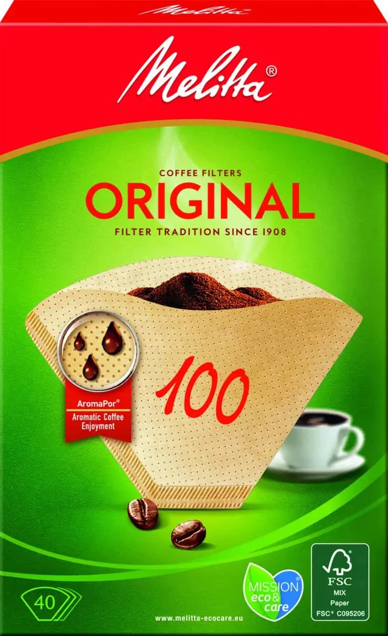 Bryg en god gammeldags kop kaffe med Melitta kaffefiltre. Kaffefiltrene er miljøvenlige med både Svane- og FSC-mærket, og indeholder hverken genbrugsfibre, lim eller andre klæbemidler, der kan forringe din kaffeoplevelse. Kaffefiltrene har særligt små huller, der giver den perfekte gennemløbstid og sørger for, at al aromaen ender i koppen og at de bitre elementer bliver i kaffegrumset. Du får 1 æske med 40 Melitta kaffefiltre.