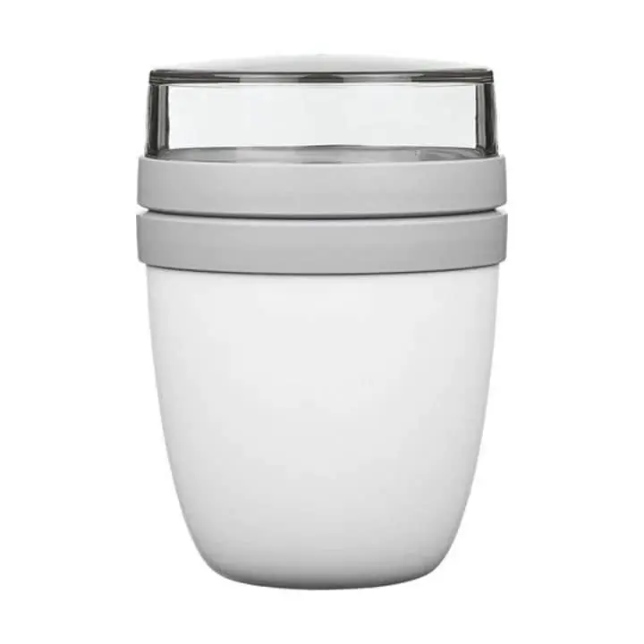 Tag nemt en snack med på farten med et Elipse frokostbæger fra Mepal. Det smarte bæger kan indeholde 500 ml og låget er et separat bæger, som kan indeholde 200 ml. Fyld frokostbægeret med yoghurt og müsli eller en frisk salat og din yndlingsdressing.