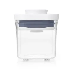 OXO POP Containers er en opbevaringsboks, som er perfekt til opbevaring af madvarer som eksempelvis mel, gryn, cornflakes, pasta, ris og lignende. Lukningen bliver lufttæt ved tryk på den store knap i låget. Knappen fungerer som håndtag, når du skal åbne boksen igen. Så nemt og simpelt.
