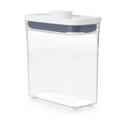 OXO POP Containers er en opbevaringsboks, som er perfekt til opbevaring af madvarer som eksempelvis mel, gryn, cornflakes, pasta, ris og lignende. Lukningen bliver lufttæt ved tryk på den store knap i låget. Knappen fungerer som håndtag, når du skal åbne boksen igen. Så nemt og simpelt.