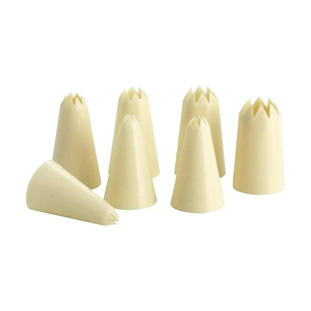 Lav smukke dekorationer på dine kager med dette tyllesæt med stjerneform fra Patisse. Du får 7 forskellige tyller i hver deres størrelse – med en diameter på mellem 4-16 mm.
