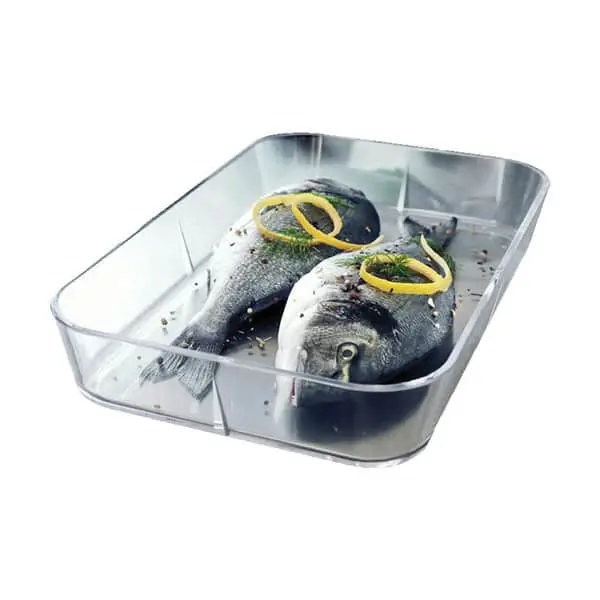 Det ovnfaste fad fra Grand Cru i glas, lader med sit stilrene udtryk maden komme til sin ret og giver kreativiteten frit spil. Seriens velkendte riller kendetegner fadets enkle udtryk og gør at maden kommer i fokus.
