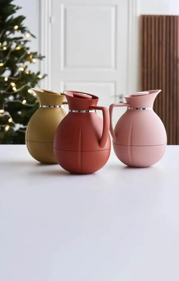 Inviter over til kaffe og kage. Især kaffen spiller en central rolle, når den serveres i den flotte sennepsfarvede termokande. Kanden er nem at åbne og lukke, du trykker blot en gang på trykknappen for at åbne, og en gang mere for at lukke.