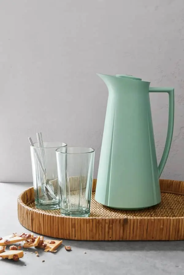 Grand Cru termokanden fra Rosendahl er designet med de fire Grand Cru riller, der sætter det helt karakteristiske præg på termokanden. Du får et holdbart og tidløst design, der følger med tiden. Det pyramideagtige formsprog giver et slankt look, der passer perfekt på det veldækkede bord. Hanken ligger behageligt i hånden, og sikrer dig et godt, stabilt greb, når du skænker kaffe. Den praktiske trykknap-funktion er designet, så kanden holder på varmen længere, fordi du ikke behøver skrue låget løst, når du skænker – og dermed undgår du at lukke kold luft ind.
