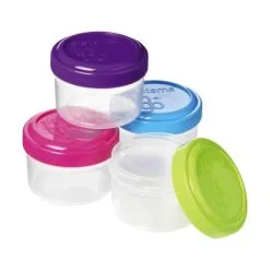 Dressing To Go er fire små beholdere, der rummer 35 ml hver. De er perfekte til at have med på farten. De små beholdere har skruelåg og holder derfor helt tæt. Du kan fx bruge dem til dressing, snacks, nødder, dip mv. De er fremstillet i klar plast med farvede låg: pink, lilla, blå og grøn.