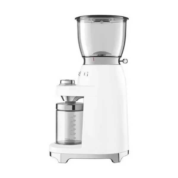 Kaffekværnen fra SMEG har en beholder til bønner, der kan indeholde 350 gram, og en beholder til kværnet kaffe, der kan indeholde 100 gram. Den konisk formede kværn sørger for, at der afgives mindre varme, når maskinen kører, og den sikrer større præcision og ensartet kværnet kaffe.