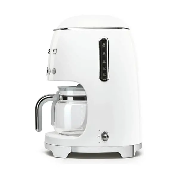 Med kaffemaskinen fra SMEG får du næsten lyst til at stå og kigge på, at den brygger din morgenkaffe, så du kan nyde synet af det smukke designelement i 50’er retro-stil, der pryder i dit køkken… Kaffemaskinen brygger filterkaffe lige, som du gerne vil have den.