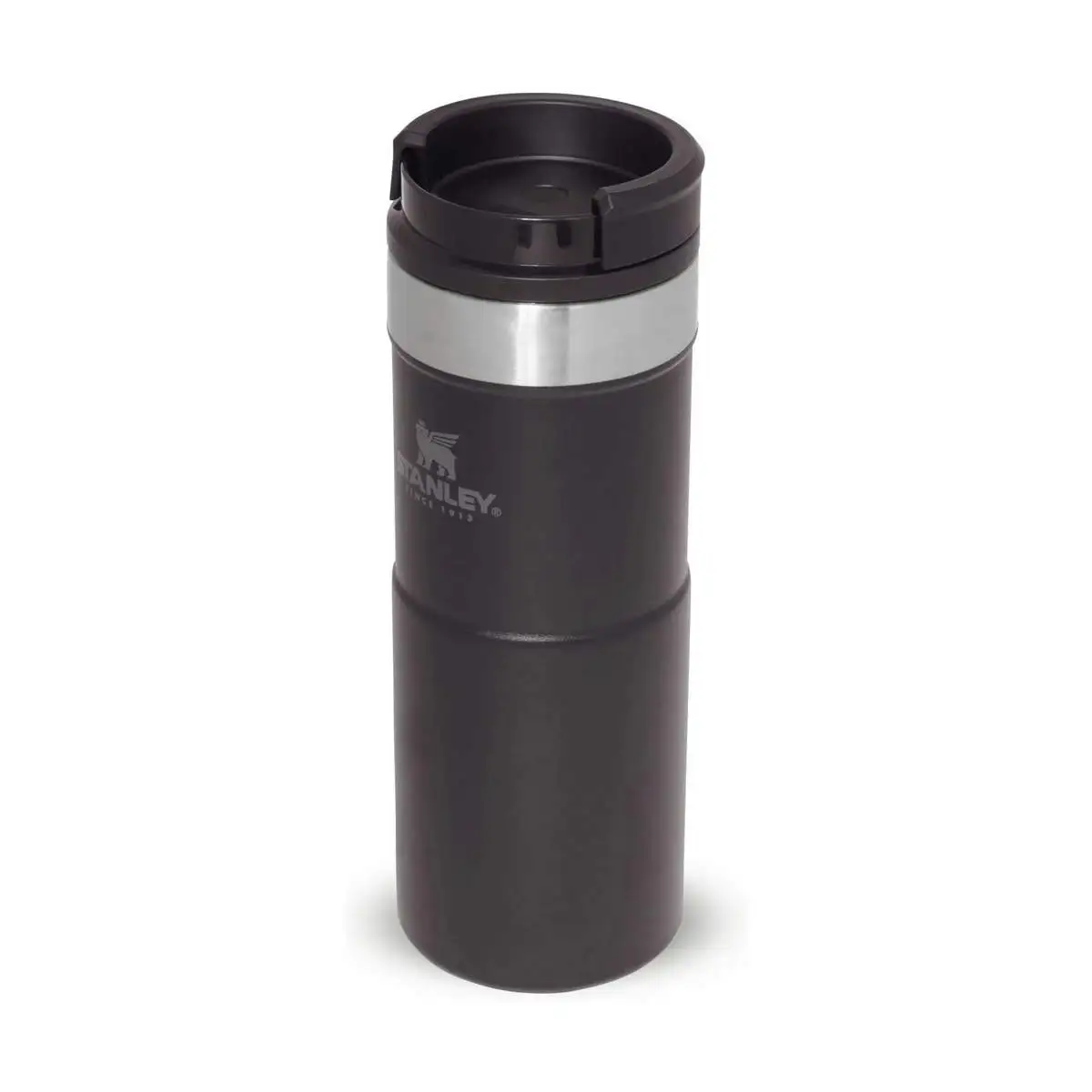 Træt af utætte termokopper? Den tid er forbi med denne termokop fra Stanley, der med sit 3 trins-drejelåg holder 100% tæt.