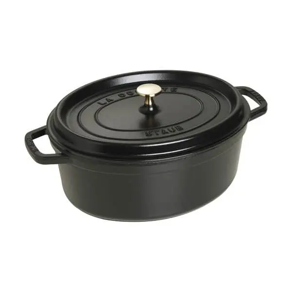 Cocotten – eller stegesoen – fra Staub er en smart multifunktionel gryde. Brug den til simremaden på komfuret – eller smid den i ovnen med en lækker steg i. Låget er lavet i et helt særligt design, hvor knopperne indfanger vanddråberne og fordeler dem helt jævnt over din ret som en slags nedbørseffekt.