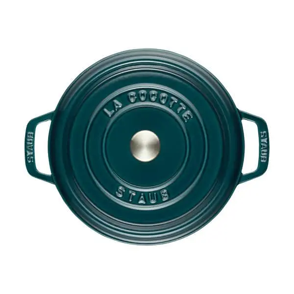 Klassisk støbejernscocotte fra Staub i den smukke farve “la mer” . Takket være lågets specielle nedbørseffekt og knop-struktur, da fordeler dampen sig over maden under hele tilberedningen. Cocotten kan anvendes til tilberedning af simreretter eller andre hverdagsretter.