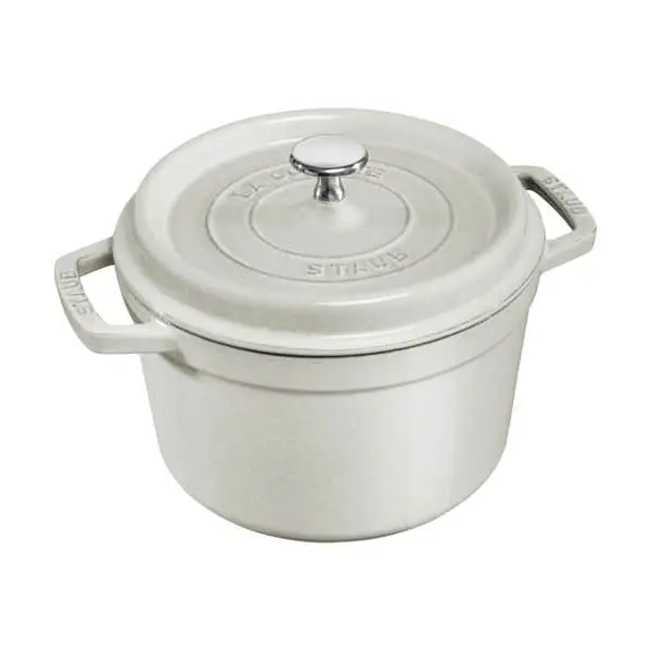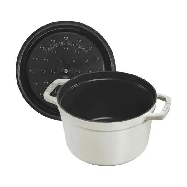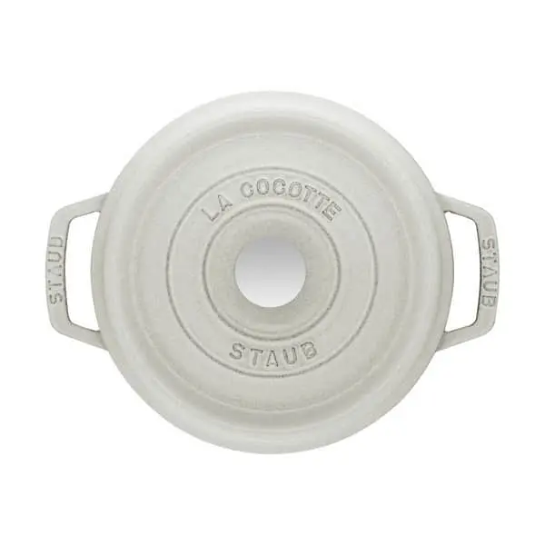 Klassisk støbejernscocotte fra Staub giver dig smagfulde madoplevelser takket være lågets specielle nedbørseffekt og knop-struktur, da dampen fordeler sig over maden under hele tilberedningen.