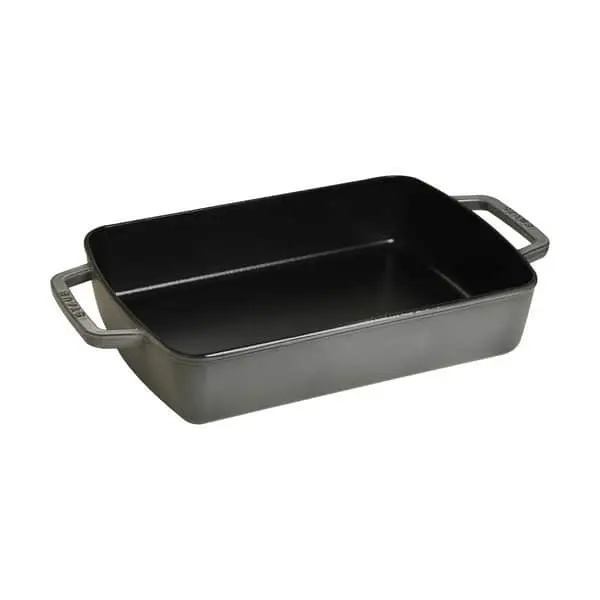 Støbejernsfad som kan anvendes til alt fra lasagne til desserter