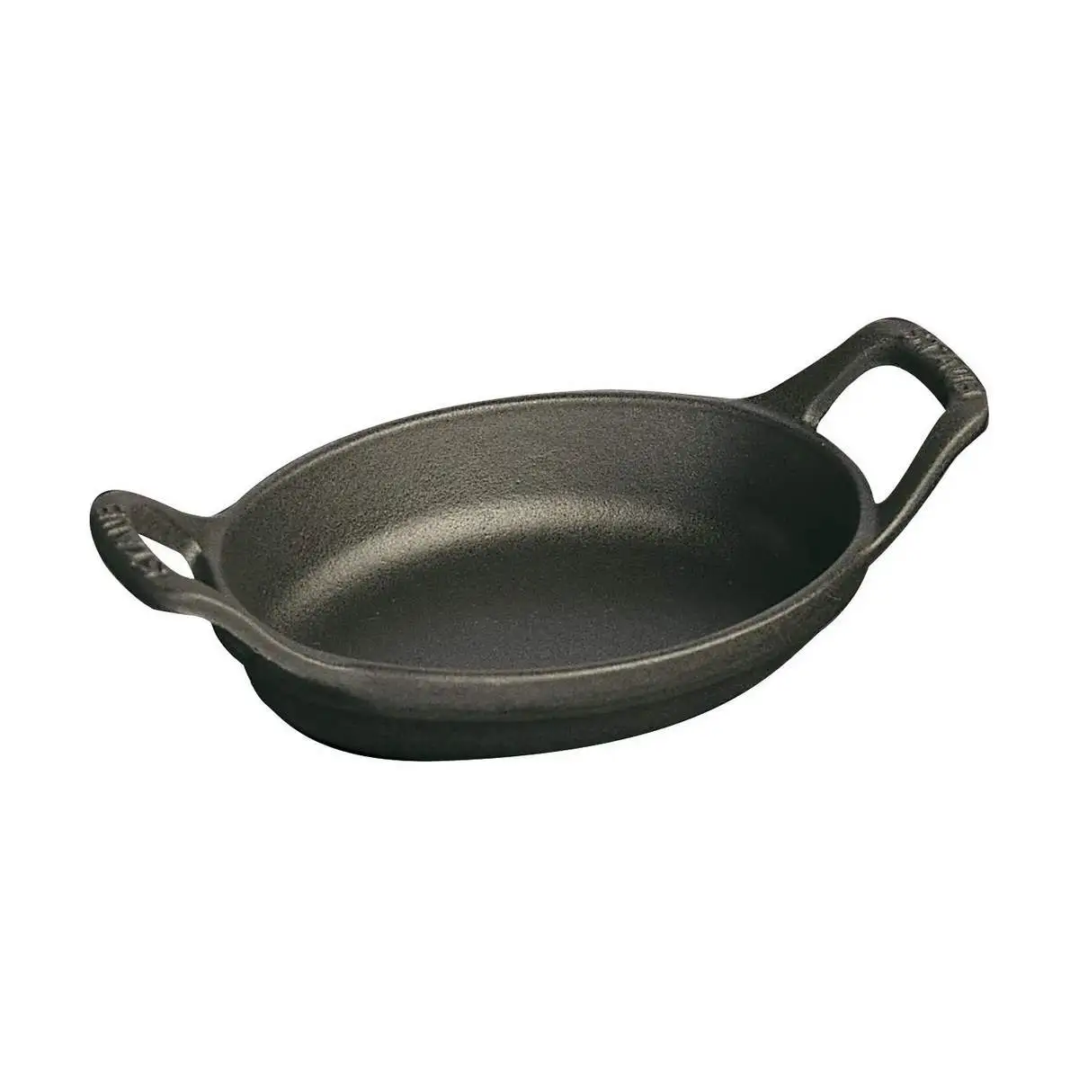 Lille støbejernsfad fra Staub til små anretninger. Perfekt til portionsanretninger eller mindre serveringer til bordet.
