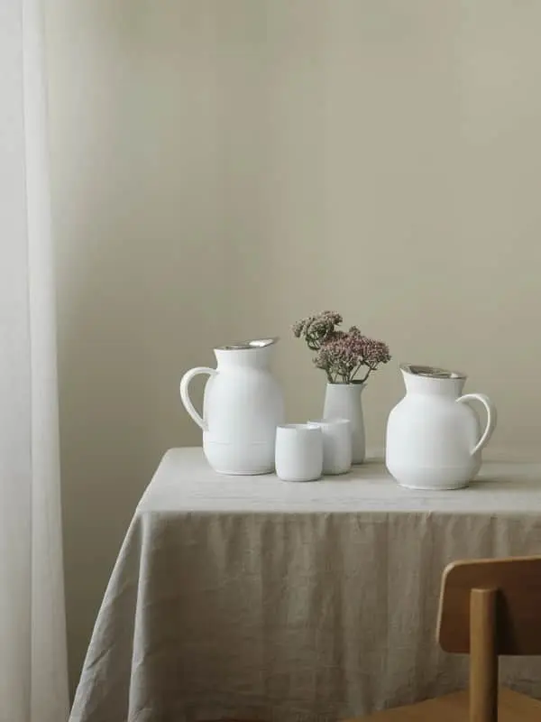Amphora er navnet på kaffekanden, og både navnet og formen er inspireret af de oldgræske lerkrukker. Du ved dem der blev brugt til at opbevare olie og vin i. Kanden har en rund form, der er lidt bredere i toppen, ligesom lerkrukker også har den runde krop med de brede skuldre.