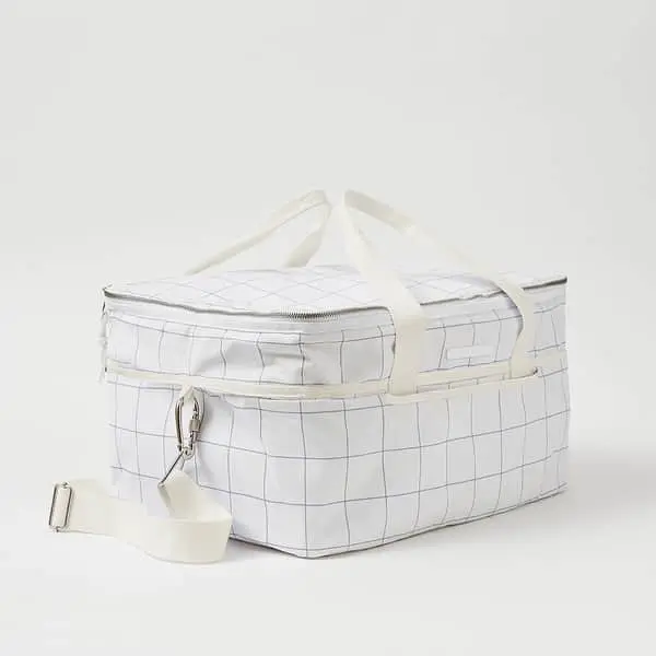 Hold maden og drikkevarerne kolde og friske i op til 5 timer med den praktiske Kanvas køletaske fra Sunnylife. Med en aftagelig skulderstrop og to håndtag er den nem at bære med sig, og den kan nemt foldes sammen og blive helt flad, når den ikke er i brug. De medfølgende køleelementer gør det nemt at opretholde den rette temperatur, samtidig med at de fungerer som speratorer i taskens store rum.
