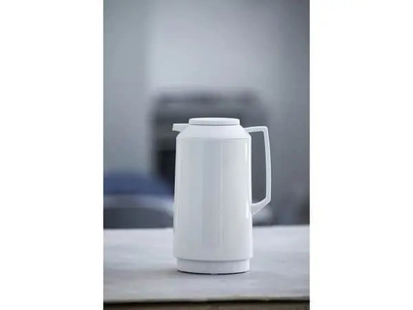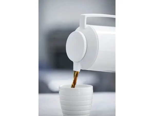 Kanden har en kapacitet på 1 liter, er velegnet til både kolde og varme drikke og så har den glasindsats. Du åbner og lukker den ved at dreje på låget.
