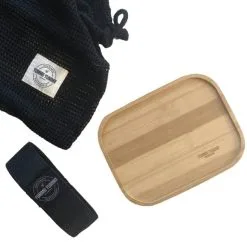 Bento-boksen fra Yummii Yummii leveres i et GOTS-certificeret net, som du kan genanvende til opbevaring af boksen.